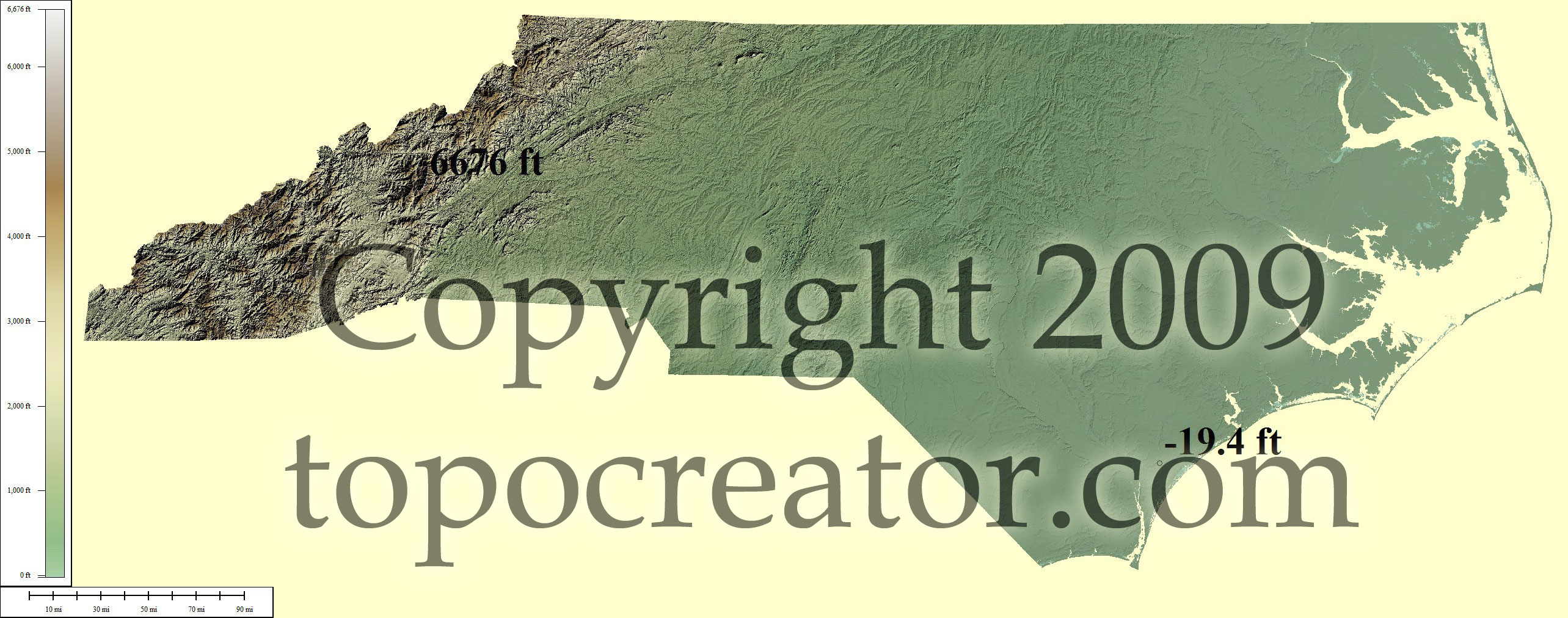 Terms of use. All maps displayed on this page or downloadable via a "download" link on this page are © 2009 topocreator.com released to the public under a Creative Commons Attribution-Share Alike license. Maps are available for purchase for a small fee for educational, personal, and commercial usage under an alternative license. The elevation data used in the creation of these maps has been obtained through the USGS, NOAA, and the US Census Bureau via the public domain.