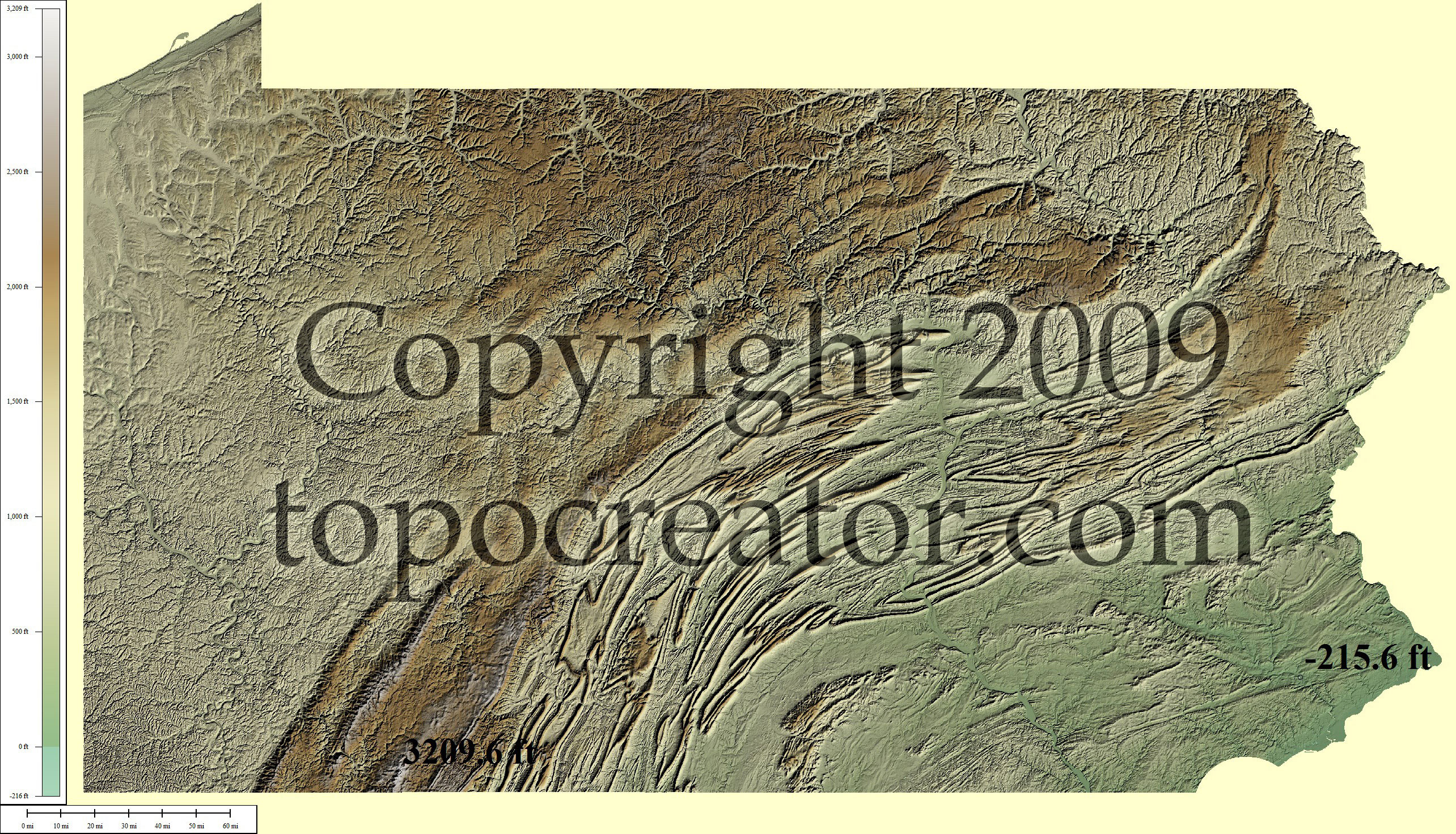 Terms of use. All maps displayed on this page or downloadable via a "download" link on this page are © 2009 topocreator.com released to the public under a Creative Commons Attribution-Share Alike license. Maps are available for purchase for a small fee for educational, personal, and commercial usage under an alternative license. The elevation data used in the creation of these maps has been obtained through the USGS, NOAA, and the US Census Bureau via the public domain.