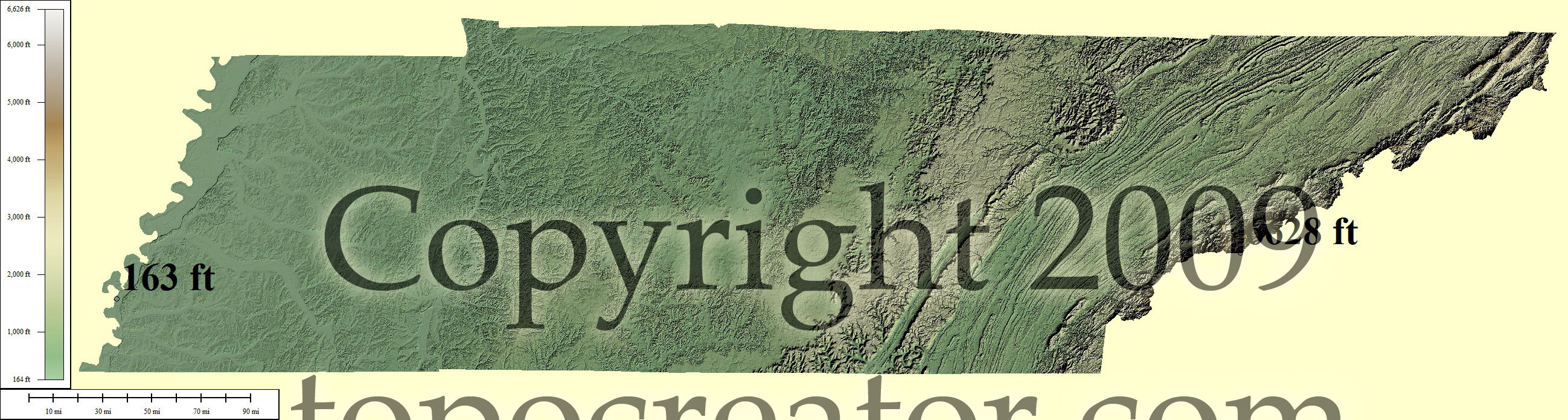Terms of use. All maps displayed on this page or downloadable via a "download" link on this page are © 2009 topocreator.com released to the public under a Creative Commons Attribution-Share Alike license. Maps are available for purchase for a small fee for educational, personal, and commercial usage under an alternative license. The elevation data used in the creation of these maps has been obtained through the USGS, NOAA, and the US Census Bureau via the public domain.