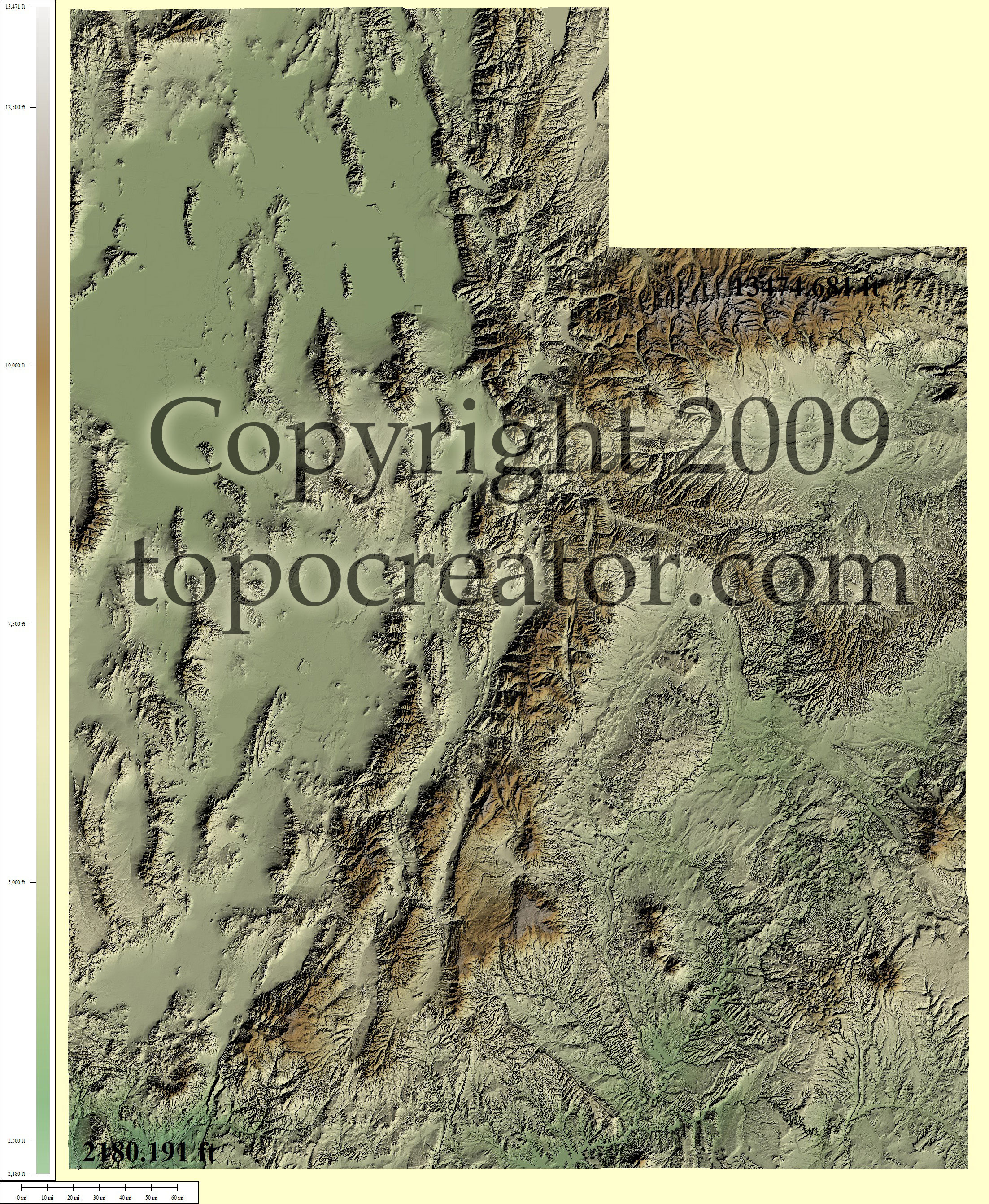 Terms of use. All maps displayed on this page or downloadable via a "download" link on this page are © 2009 topocreator.com released to the public under a Creative Commons Attribution-Share Alike license. Maps are available for purchase for a small fee for educational, personal, and commercial usage under an alternative license. The elevation data used in the creation of these maps has been obtained through the USGS, NOAA, and the US Census Bureau via the public domain.