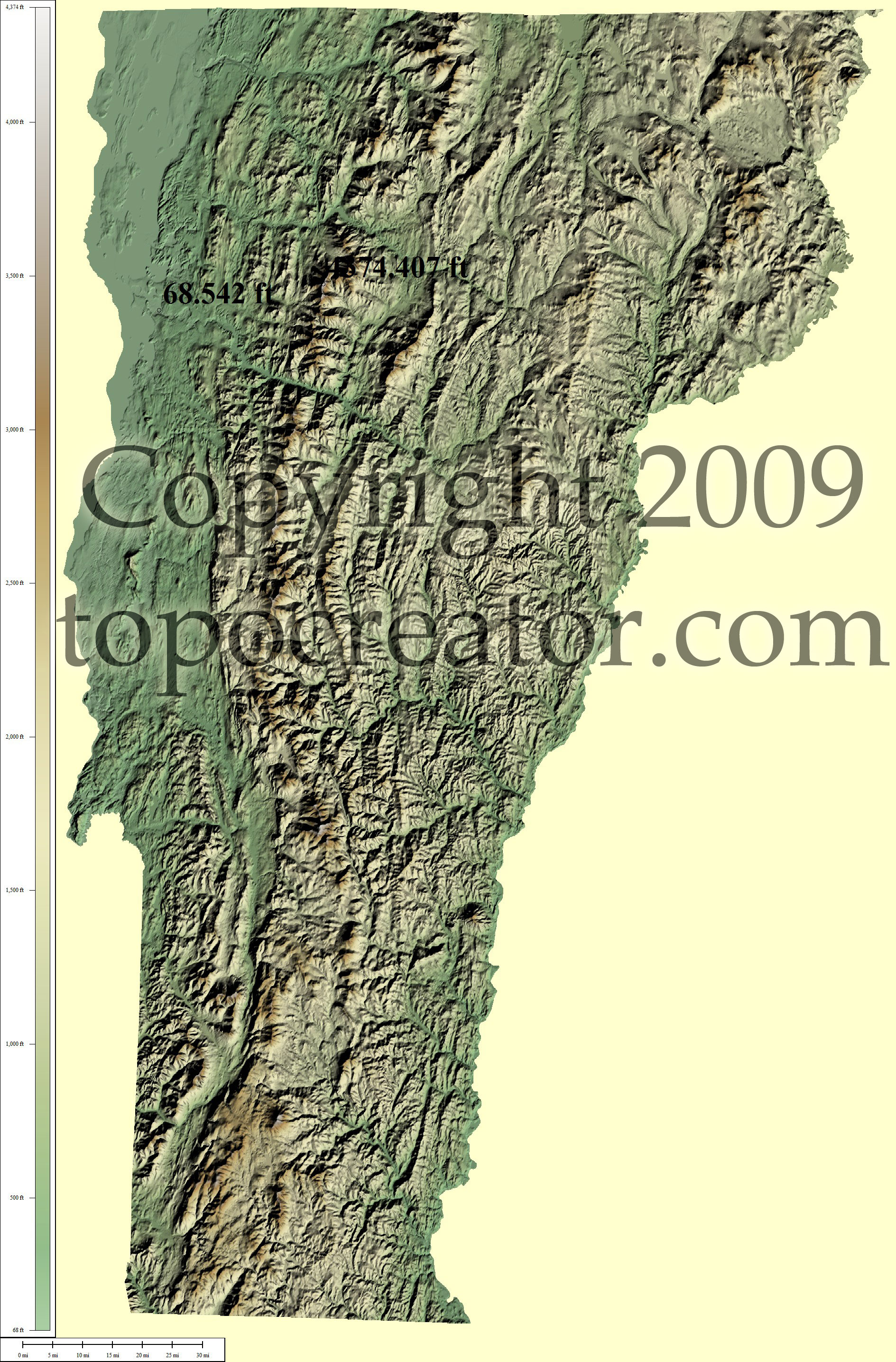 Terms of use. All maps displayed on this page or downloadable via a "download" link on this page are © 2009 topocreator.com released to the public under a Creative Commons Attribution-Share Alike license. Maps are available for purchase for a small fee for educational, personal, and commercial usage under an alternative license. The elevation data used in the creation of these maps has been obtained through the USGS, NOAA, and the US Census Bureau via the public domain.