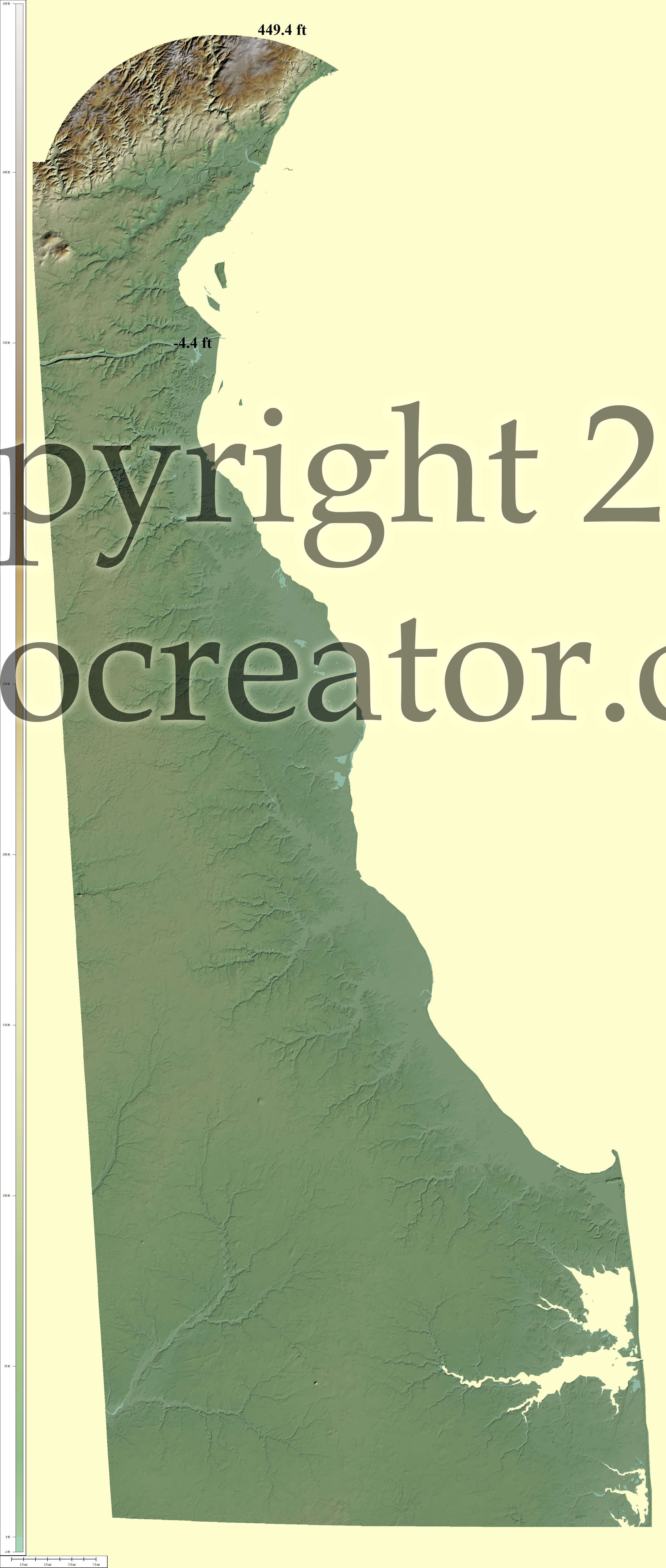 Terms of use. All maps displayed on this page or downloadable via a "download" link on this page are © 2009 topocreator.com released to the public under a Creative Commons Attribution-Share Alike license. Maps are available for purchase for a small fee for educational, personal, and commercial usage under an alternative license. The elevation data used in the creation of these maps has been obtained through the USGS, NOAA, and the US Census Bureau via the public domain.