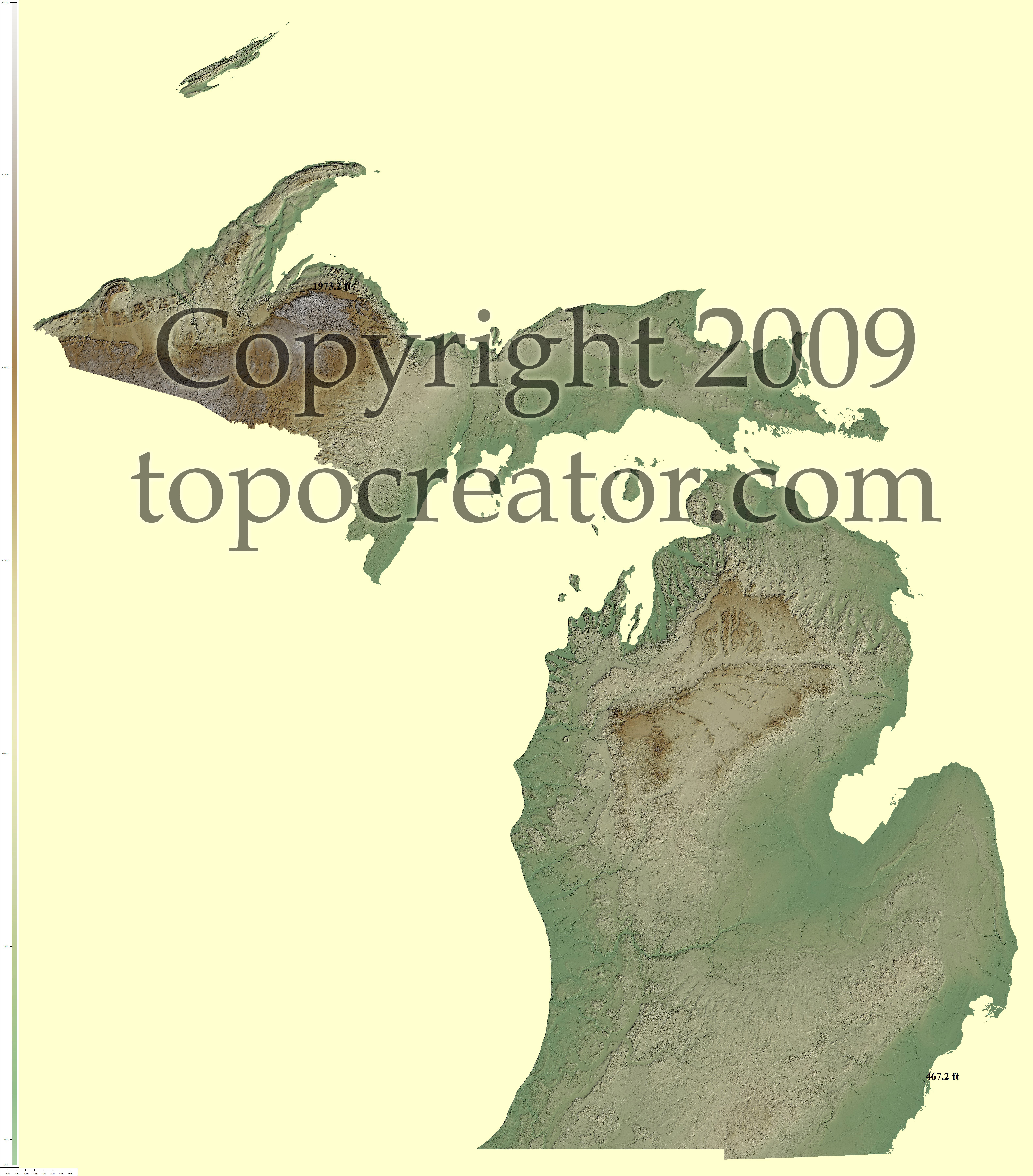 Terms of use. All maps displayed on this page or downloadable via a "download" link on this page are © 2009 topocreator.com released to the public under a Creative Commons Attribution-Share Alike license. Maps are available for purchase for a small fee for educational, personal, and commercial usage under an alternative license. The elevation data used in the creation of these maps has been obtained through the USGS, NOAA, and the US Census Bureau via the public domain.