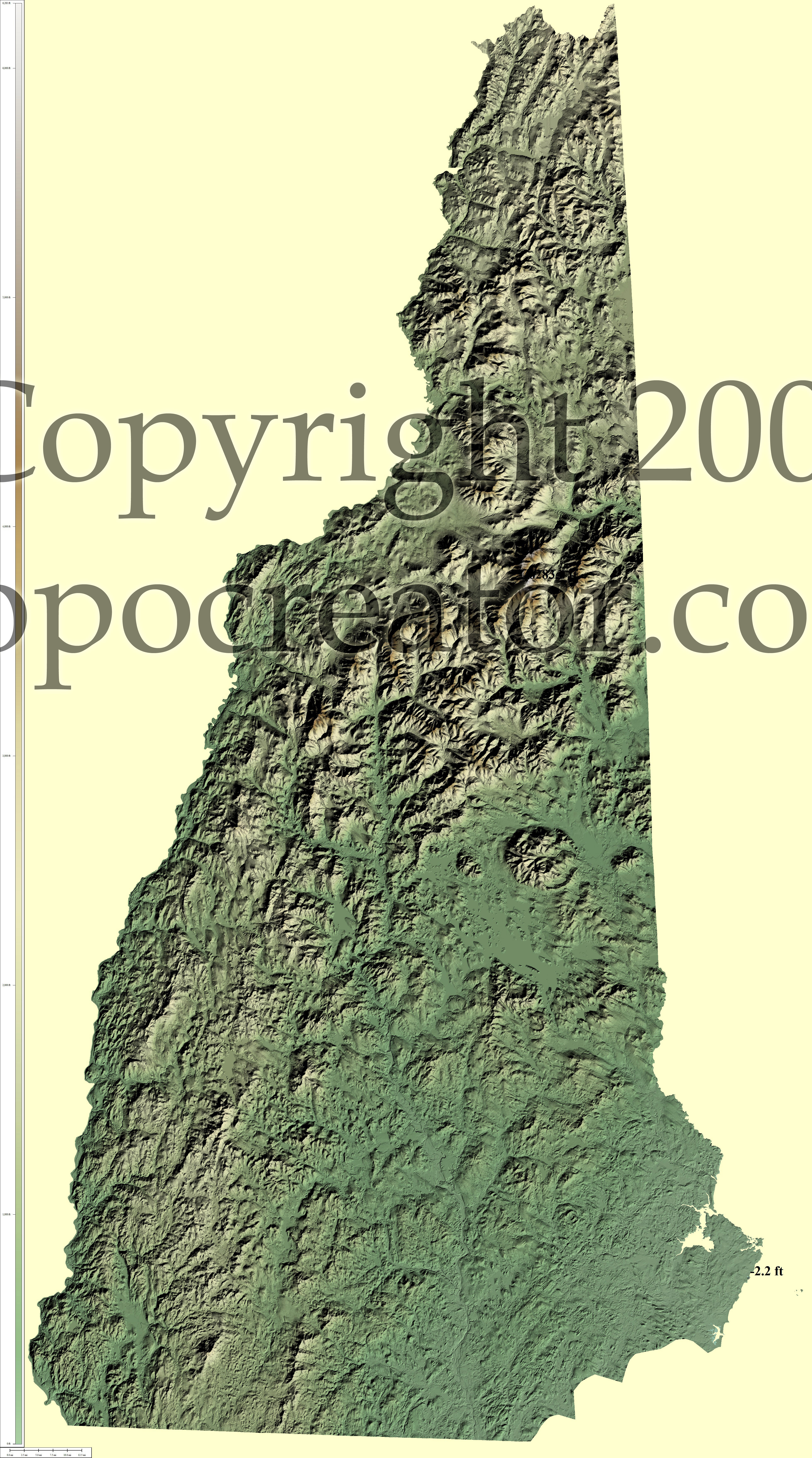 Terms of use. All maps displayed on this page or downloadable via a "download" link on this page are © 2009 topocreator.com released to the public under a Creative Commons Attribution-Share Alike license. Maps are available for purchase for a small fee for educational, personal, and commercial usage under an alternative license. The elevation data used in the creation of these maps has been obtained through the USGS, NOAA, and the US Census Bureau via the public domain.