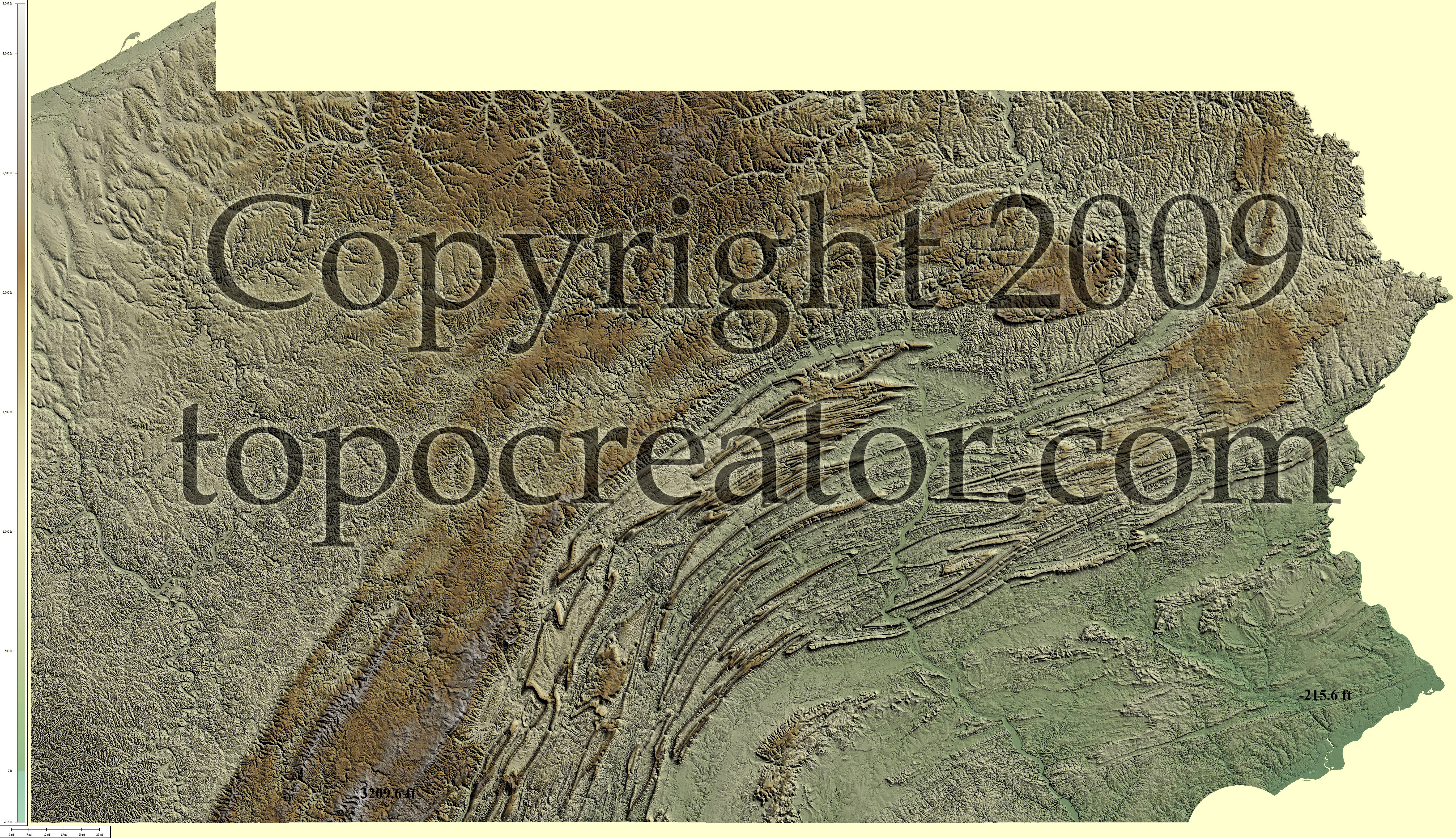 Terms of use. All maps displayed on this page or downloadable via a "download" link on this page are © 2009 topocreator.com released to the public under a Creative Commons Attribution-Share Alike license. Maps are available for purchase for a small fee for educational, personal, and commercial usage under an alternative license. The elevation data used in the creation of these maps has been obtained through the USGS, NOAA, and the US Census Bureau via the public domain.