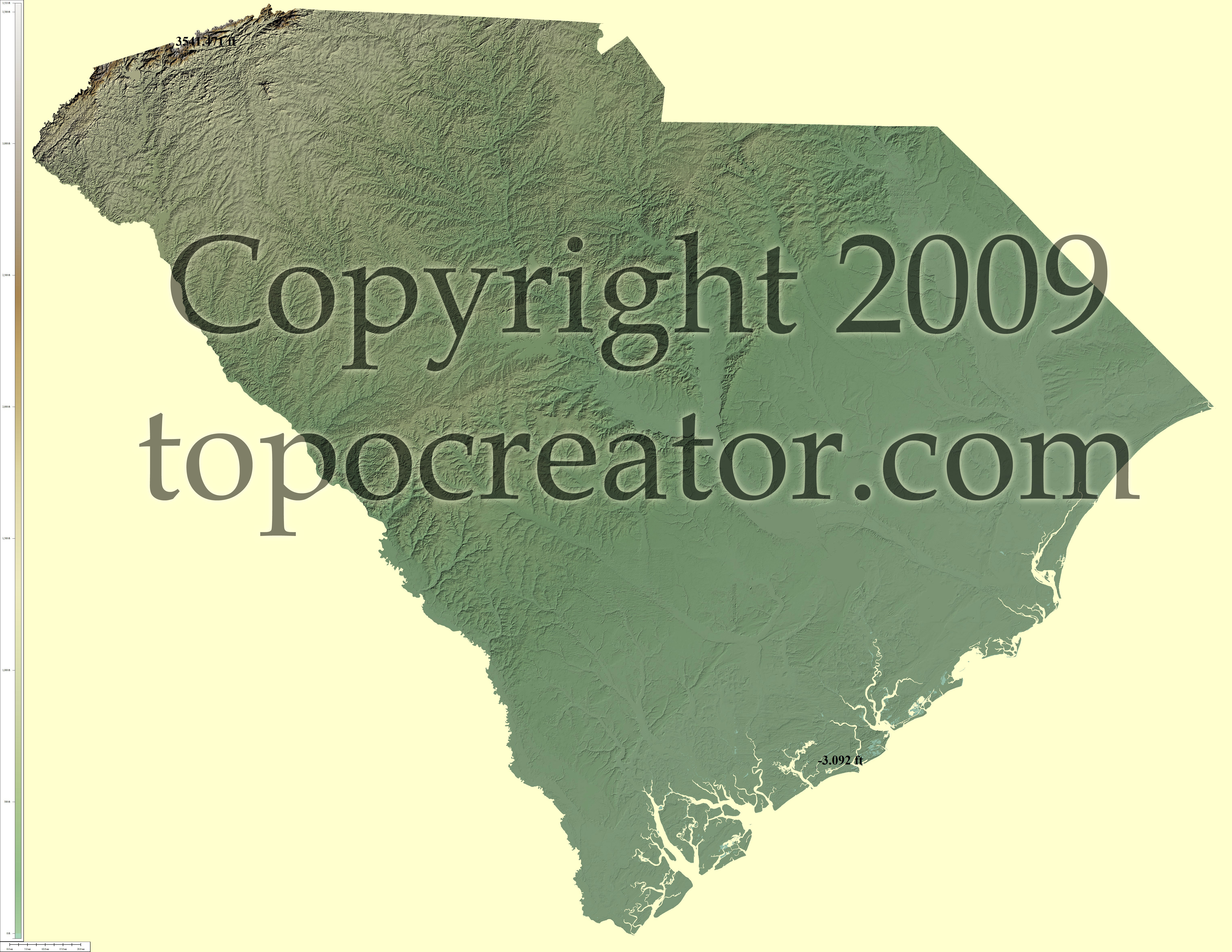Terms of use. All maps displayed on this page or downloadable via a "download" link on this page are © 2009 topocreator.com released to the public under a Creative Commons Attribution-Share Alike license. Maps are available for purchase for a small fee for educational, personal, and commercial usage under an alternative license. The elevation data used in the creation of these maps has been obtained through the USGS, NOAA, and the US Census Bureau via the public domain.