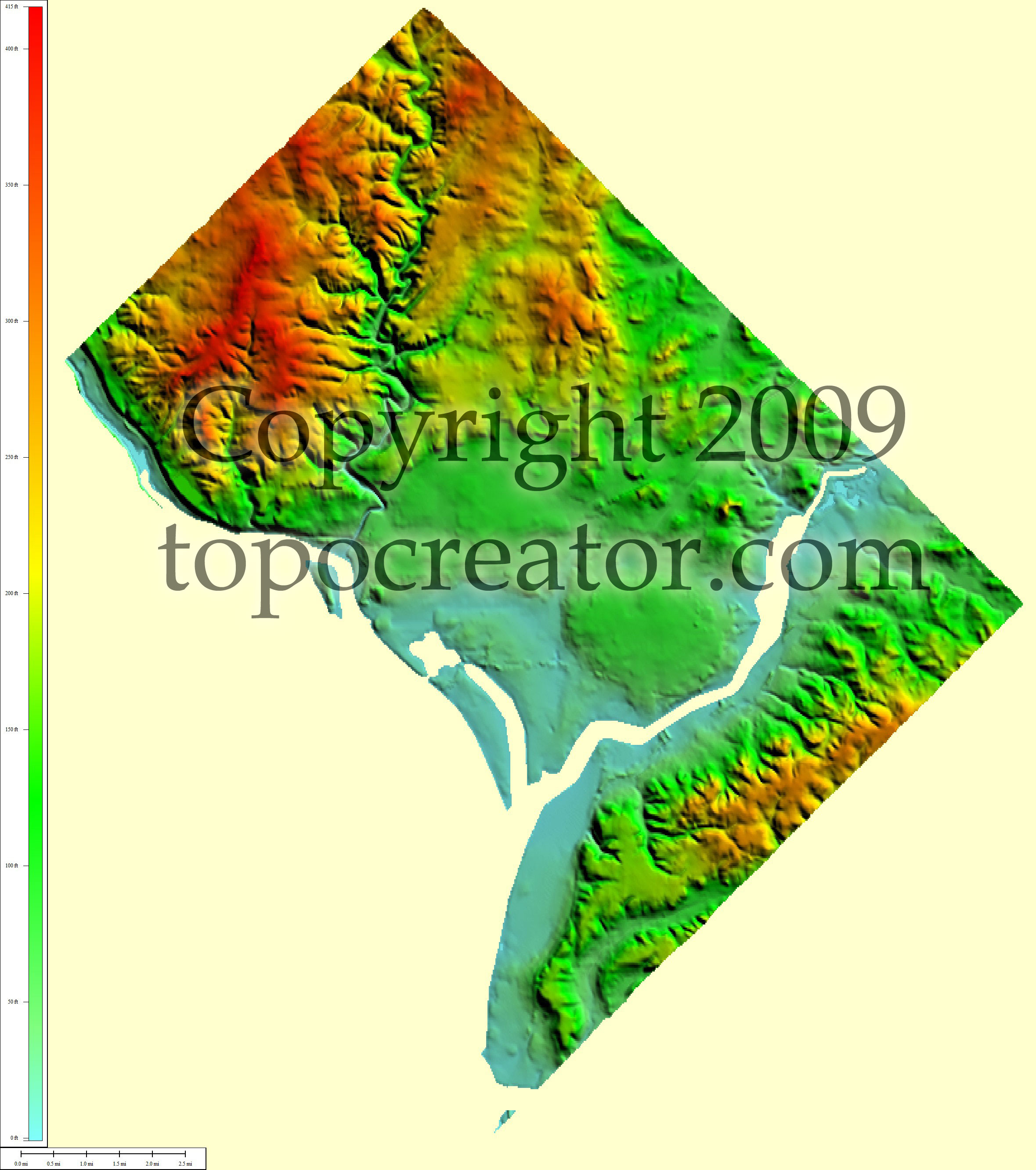 Terms of use. All maps displayed on this page or downloadable via a "download" link on this page are © 2009 topocreator.com released to the public under a Creative Commons Attribution-Share Alike license. Maps are available for purchase for a small fee for educational, personal, and commercial usage under an alternative license. The elevation data used in the creation of these maps has been obtained through the USGS, NOAA, and the US Census Bureau via the public domain.