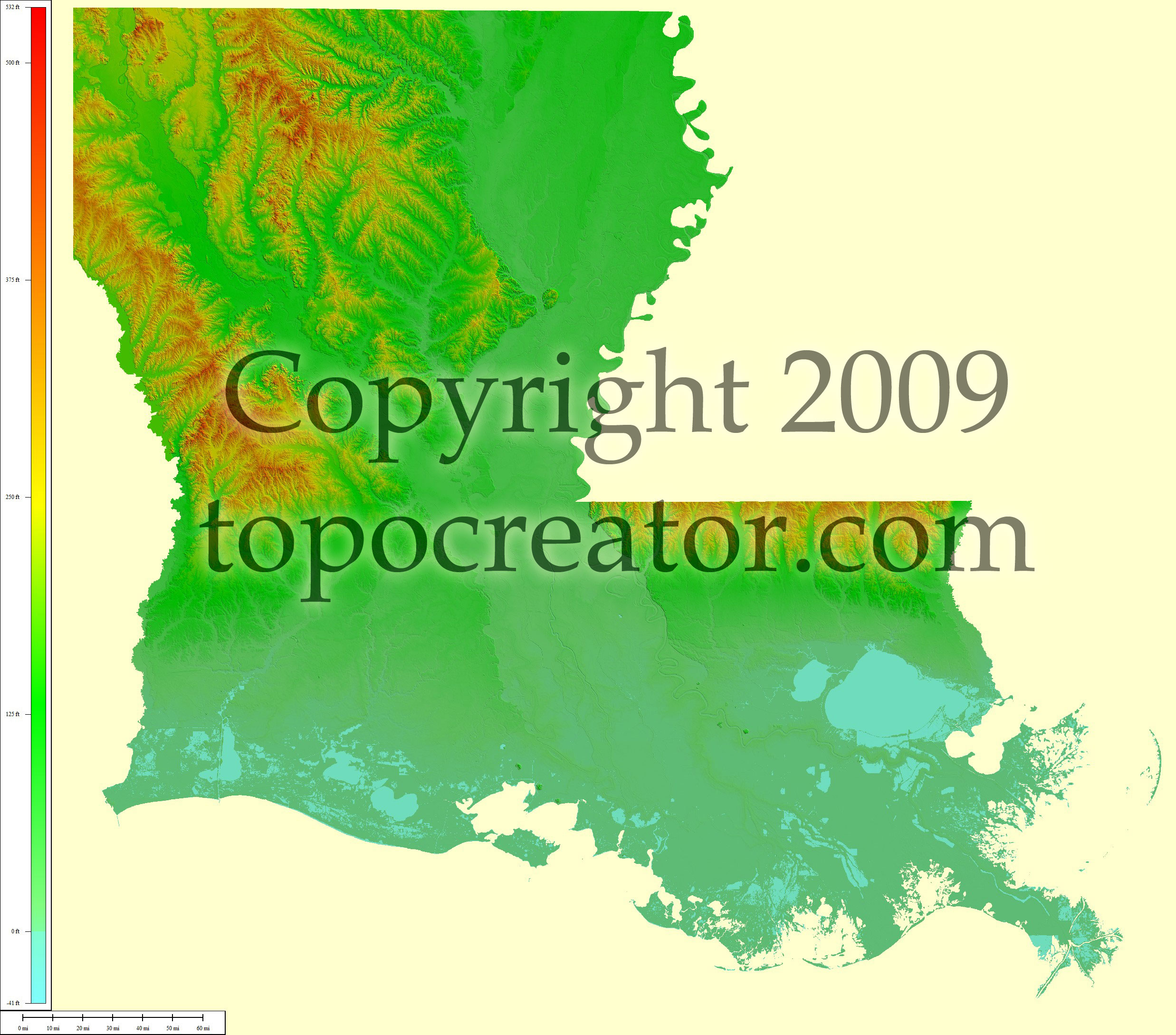 Terms of use. All maps displayed on this page or downloadable via a "download" link on this page are © 2009 topocreator.com released to the public under a Creative Commons Attribution-Share Alike license. Maps are available for purchase for a small fee for educational, personal, and commercial usage under an alternative license. The elevation data used in the creation of these maps has been obtained through the USGS, NOAA, and the US Census Bureau via the public domain.