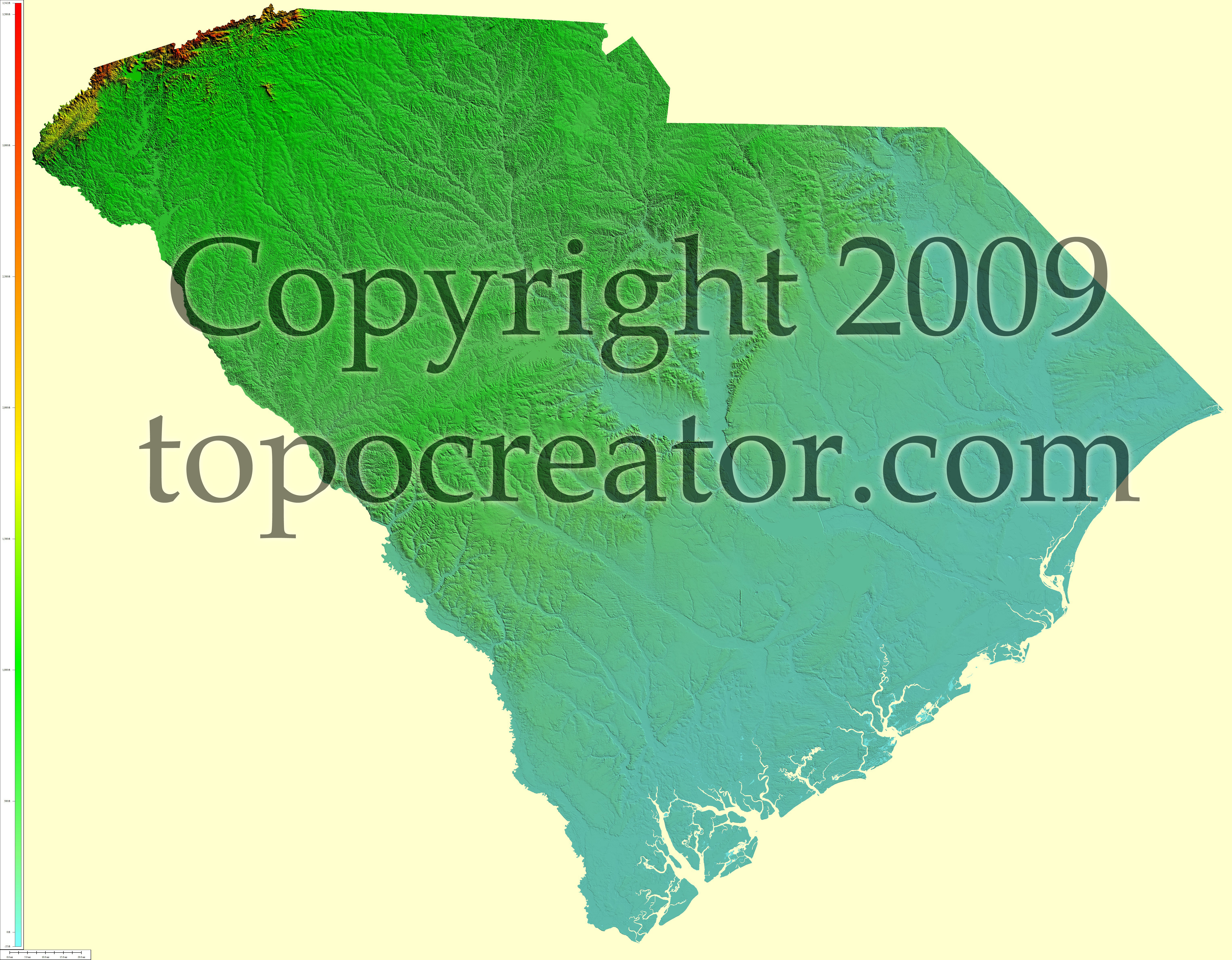Terms of use. All maps displayed on this page or downloadable via a "download" link on this page are © 2009 topocreator.com released to the public under a Creative Commons Attribution-Share Alike license. Maps are available for purchase for a small fee for educational, personal, and commercial usage under an alternative license. The elevation data used in the creation of these maps has been obtained through the USGS, NOAA, and the US Census Bureau via the public domain.