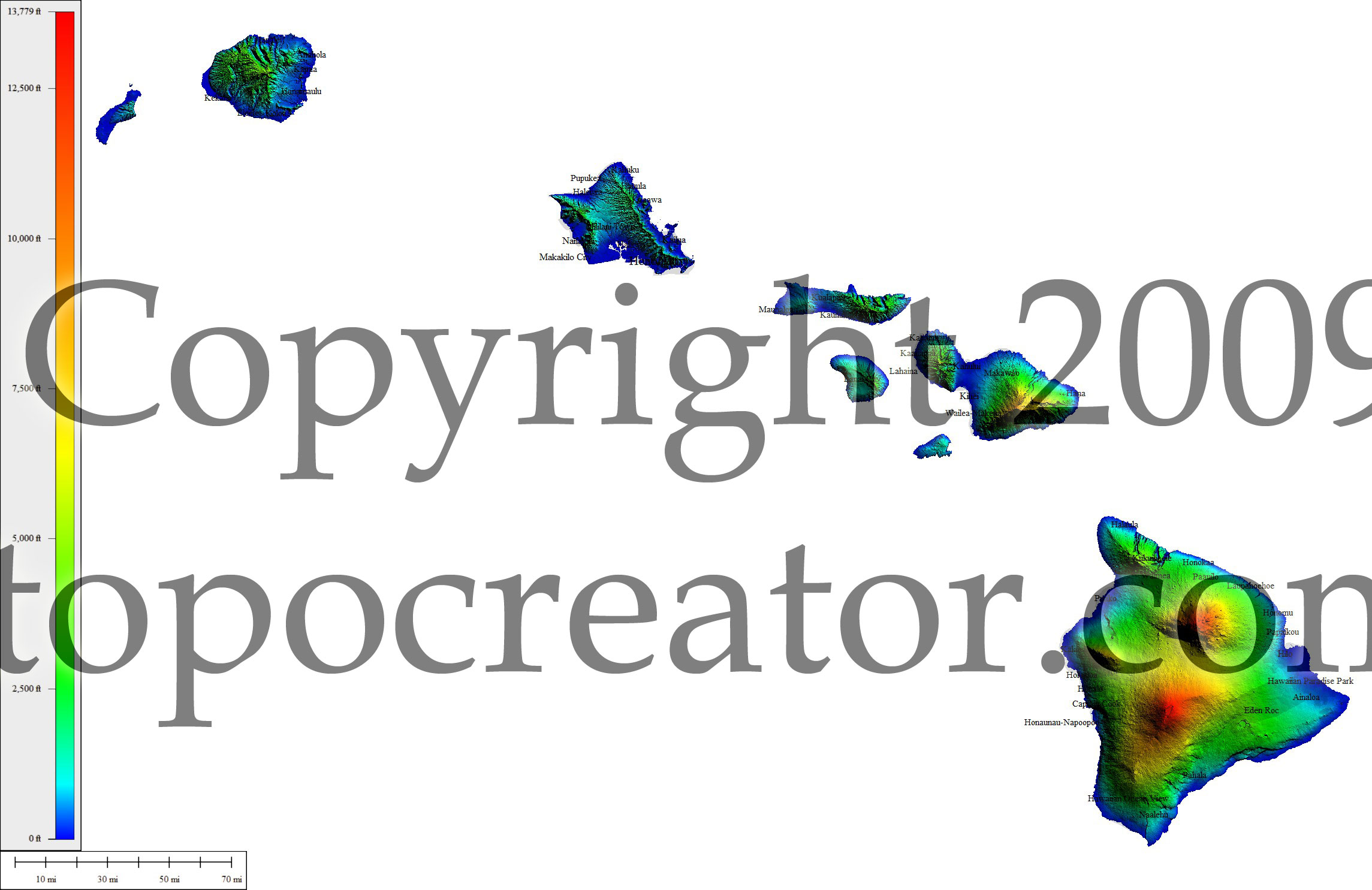 Terms of use. All maps displayed on this page or downloadable via a "download" link on this page are © 2009 topocreator.com released to the public under a Creative Commons Attribution-Share Alike license. Maps are available for purchase for a small fee for educational, personal, and commercial usage under an alternative license. The elevation data used in the creation of these maps has been obtained through the USGS, NOAA, and the US Census Bureau via the public domain.