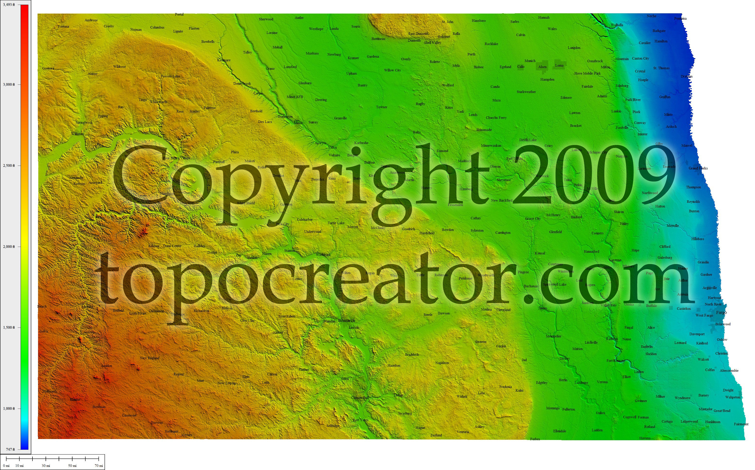 Terms of use. All maps displayed on this page or downloadable via a "download" link on this page are © 2009 topocreator.com released to the public under a Creative Commons Attribution-Share Alike license. Maps are available for purchase for a small fee for educational, personal, and commercial usage under an alternative license. The elevation data used in the creation of these maps has been obtained through the USGS, NOAA, and the US Census Bureau via the public domain.