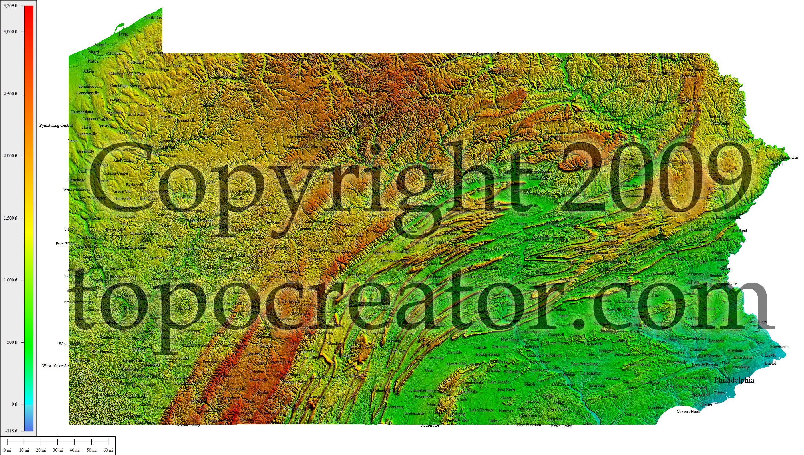 Terms of use. All maps displayed on this page or downloadable via a "download" link on this page are © 2009 topocreator.com released to the public under a Creative Commons Attribution-Share Alike license. Maps are available for purchase for a small fee for educational, personal, and commercial usage under an alternative license. The elevation data used in the creation of these maps has been obtained through the USGS, NOAA, and the US Census Bureau via the public domain.