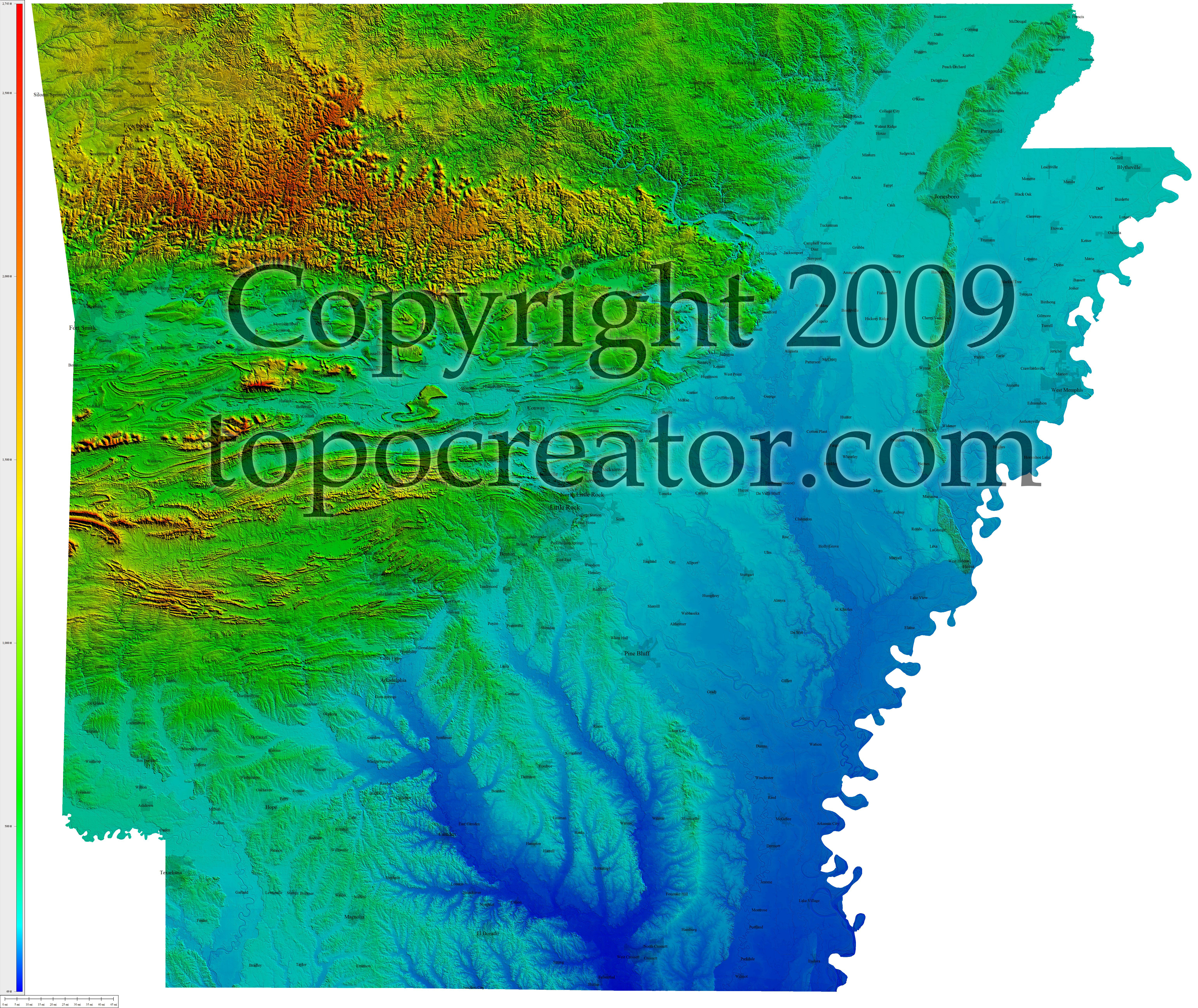 Terms of use. All maps displayed on this page or downloadable via a "download" link on this page are © 2009 topocreator.com released to the public under a Creative Commons Attribution-Share Alike license. Maps are available for purchase for a small fee for educational, personal, and commercial usage under an alternative license. The elevation data used in the creation of these maps has been obtained through the USGS, NOAA, and the US Census Bureau via the public domain.