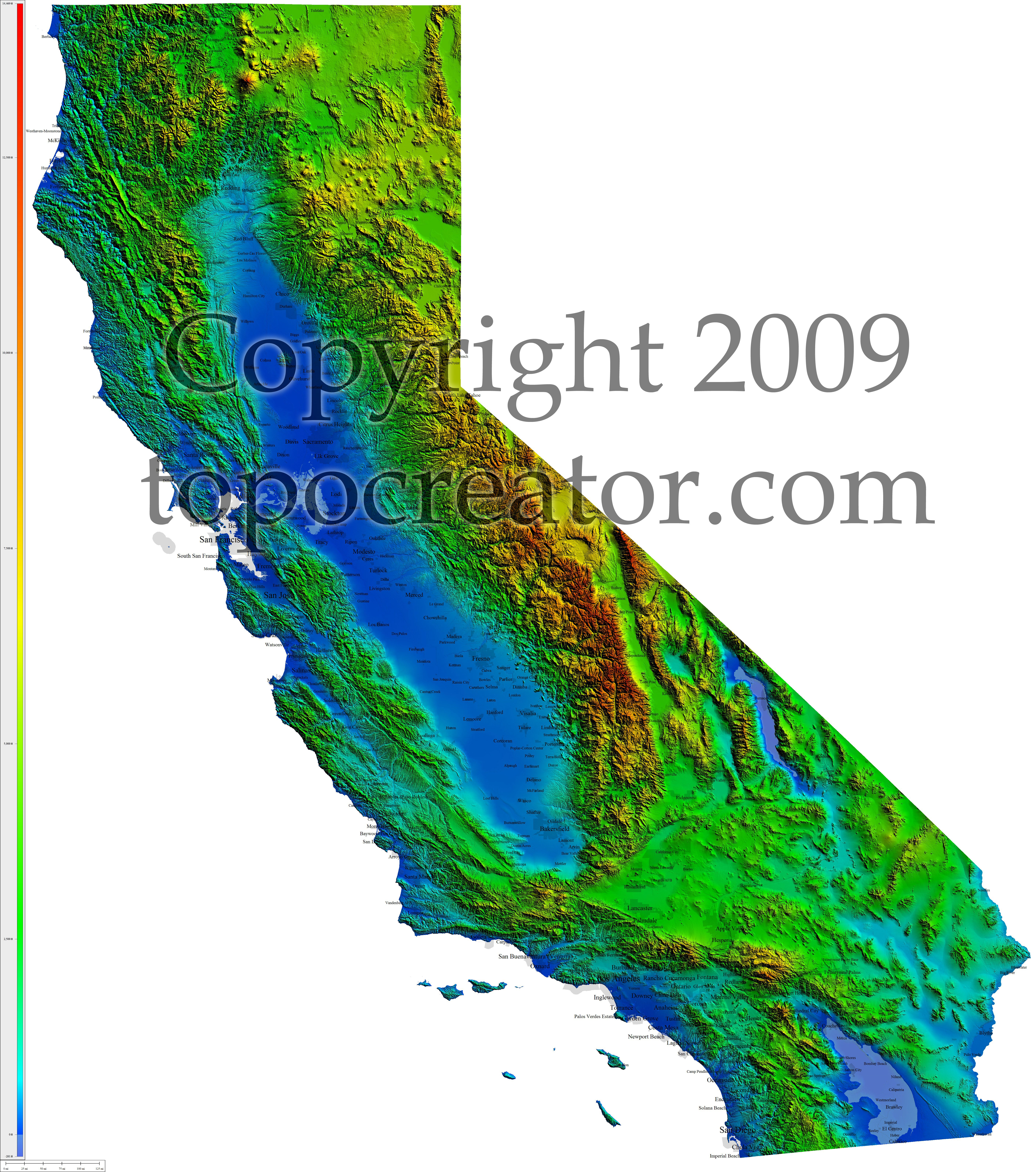 Terms of use. All maps displayed on this page or downloadable via a "download" link on this page are © 2009 topocreator.com released to the public under a Creative Commons Attribution-Share Alike license. Maps are available for purchase for a small fee for educational, personal, and commercial usage under an alternative license. The elevation data used in the creation of these maps has been obtained through the USGS, NOAA, and the US Census Bureau via the public domain.