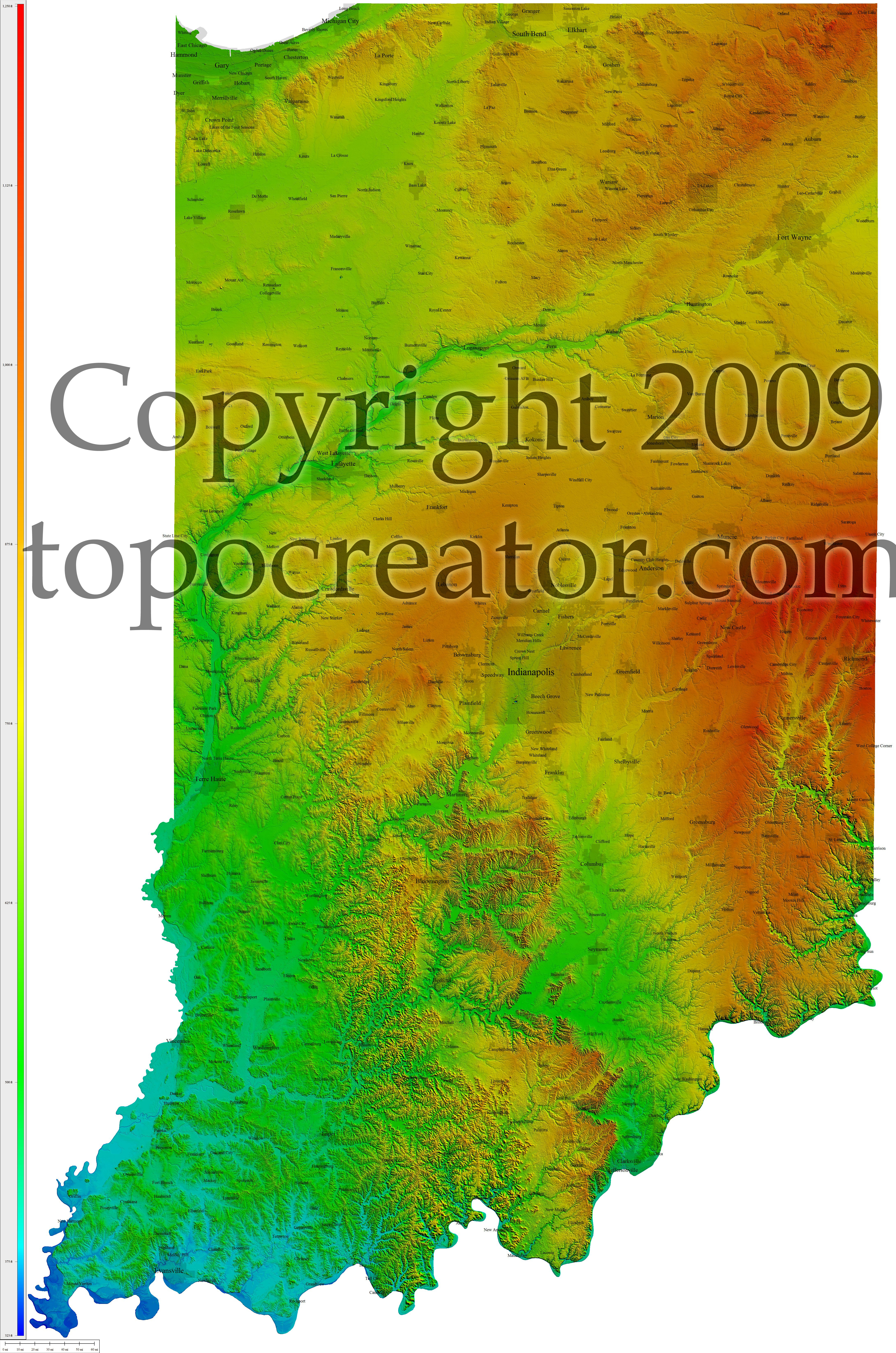 Terms of use. All maps displayed on this page or downloadable via a "download" link on this page are © 2009 topocreator.com released to the public under a Creative Commons Attribution-Share Alike license. Maps are available for purchase for a small fee for educational, personal, and commercial usage under an alternative license. The elevation data used in the creation of these maps has been obtained through the USGS, NOAA, and the US Census Bureau via the public domain.
