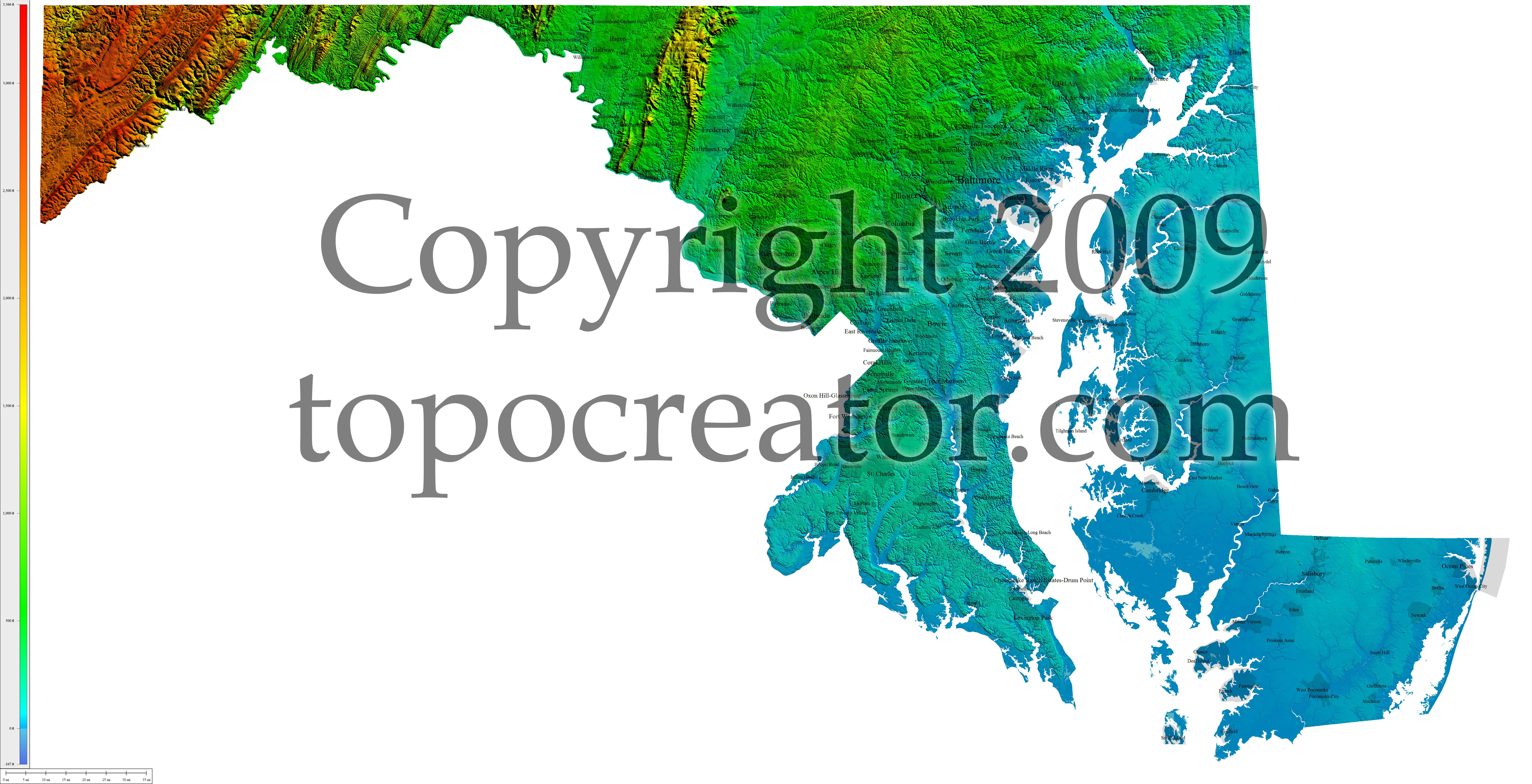 Terms of use. All maps displayed on this page or downloadable via a "download" link on this page are © 2009 topocreator.com released to the public under a Creative Commons Attribution-Share Alike license. Maps are available for purchase for a small fee for educational, personal, and commercial usage under an alternative license. The elevation data used in the creation of these maps has been obtained through the USGS, NOAA, and the US Census Bureau via the public domain.