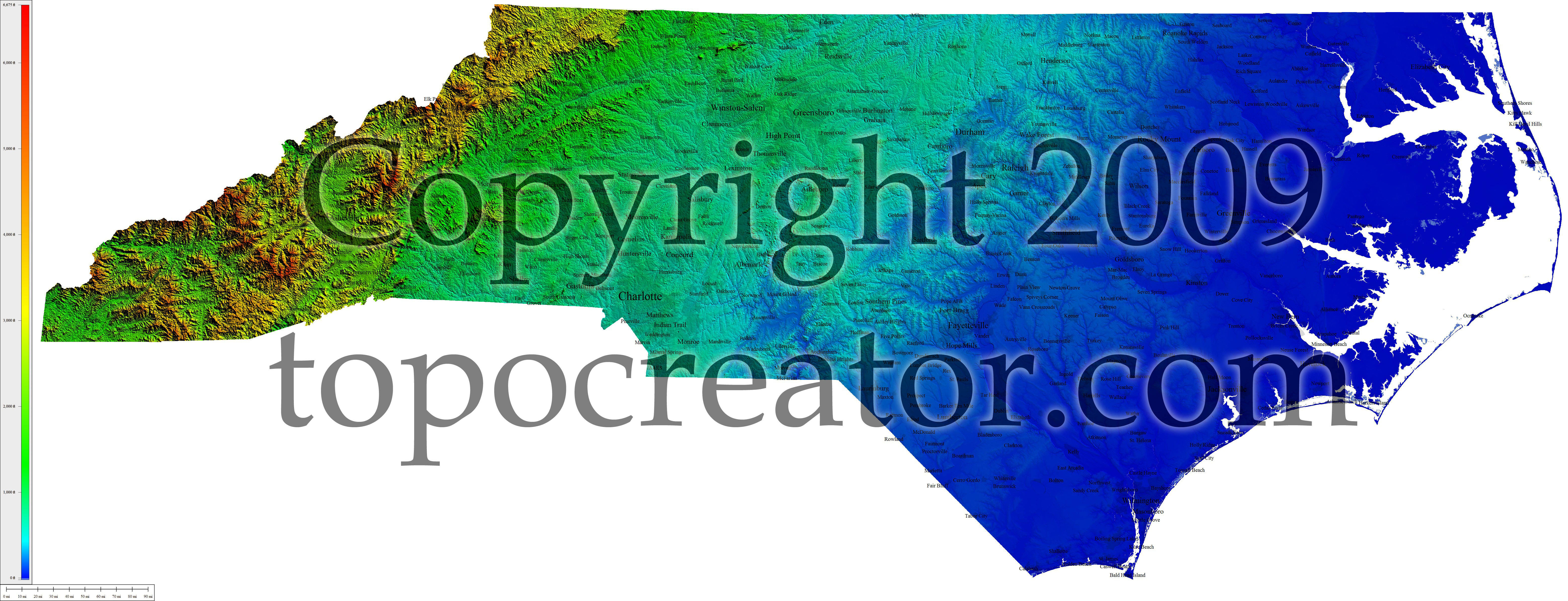 Terms of use. All maps displayed on this page or downloadable via a "download" link on this page are © 2009 topocreator.com released to the public under a Creative Commons Attribution-Share Alike license. Maps are available for purchase for a small fee for educational, personal, and commercial usage under an alternative license. The elevation data used in the creation of these maps has been obtained through the USGS, NOAA, and the US Census Bureau via the public domain.