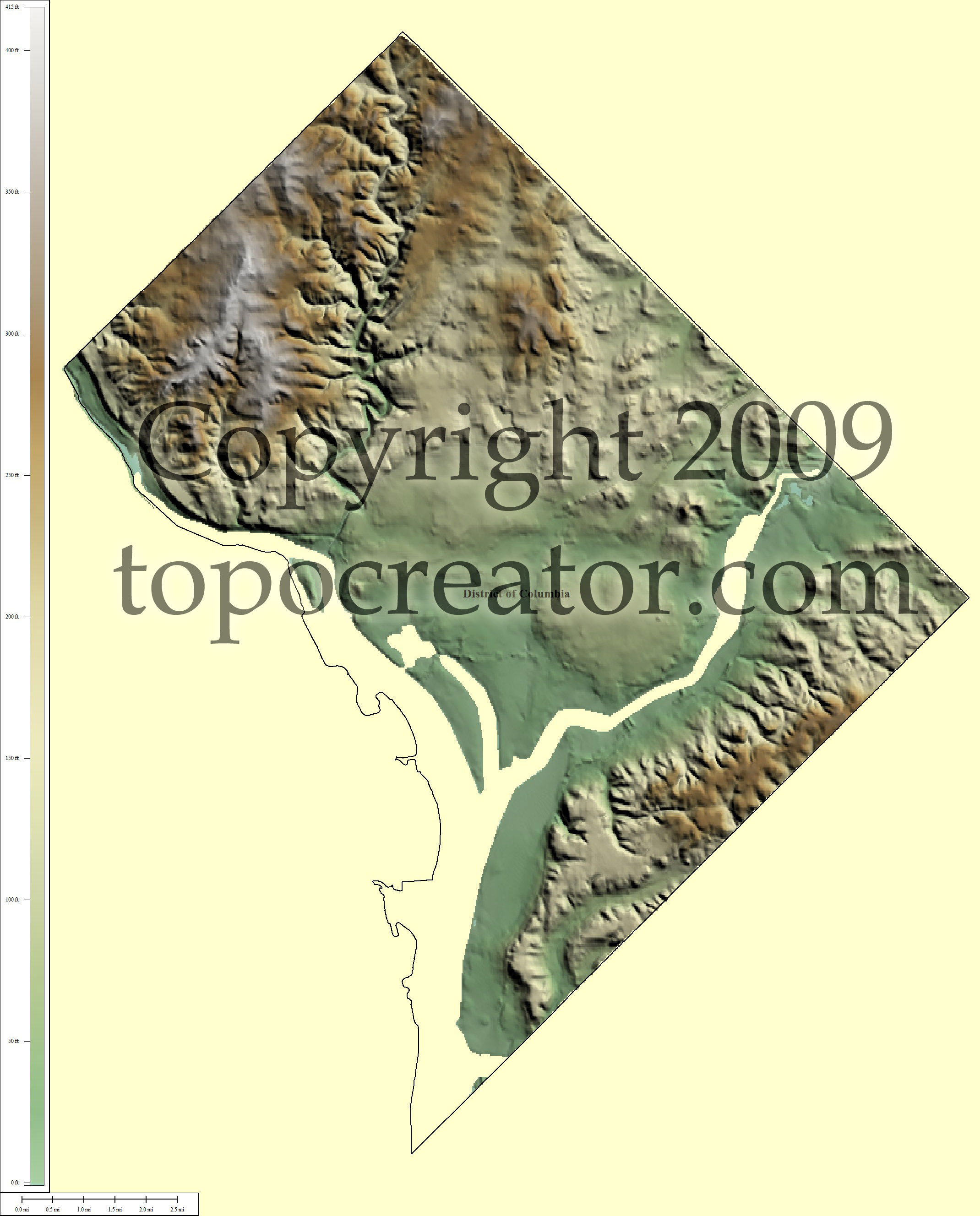 Terms of use. All maps displayed on this page or downloadable via a "download" link on this page are © 2009 topocreator.com released to the public under a Creative Commons Attribution-Share Alike license. Maps are available for purchase for a small fee for educational, personal, and commercial usage under an alternative license. The elevation data used in the creation of these maps has been obtained through the USGS, NOAA, and the US Census Bureau via the public domain.