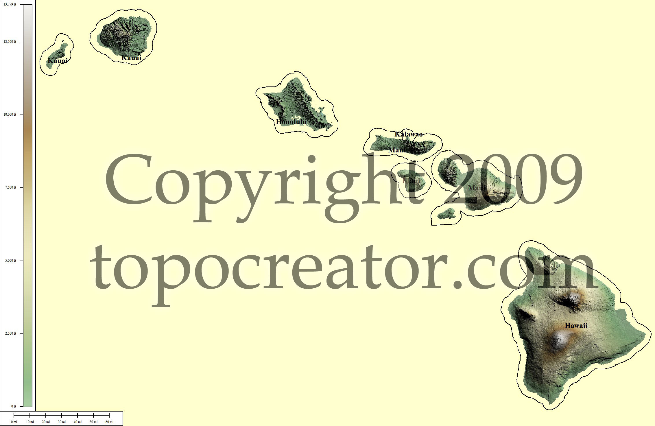 Terms of use. All maps displayed on this page or downloadable via a "download" link on this page are © 2009 topocreator.com released to the public under a Creative Commons Attribution-Share Alike license. Maps are available for purchase for a small fee for educational, personal, and commercial usage under an alternative license. The elevation data used in the creation of these maps has been obtained through the USGS, NOAA, and the US Census Bureau via the public domain.