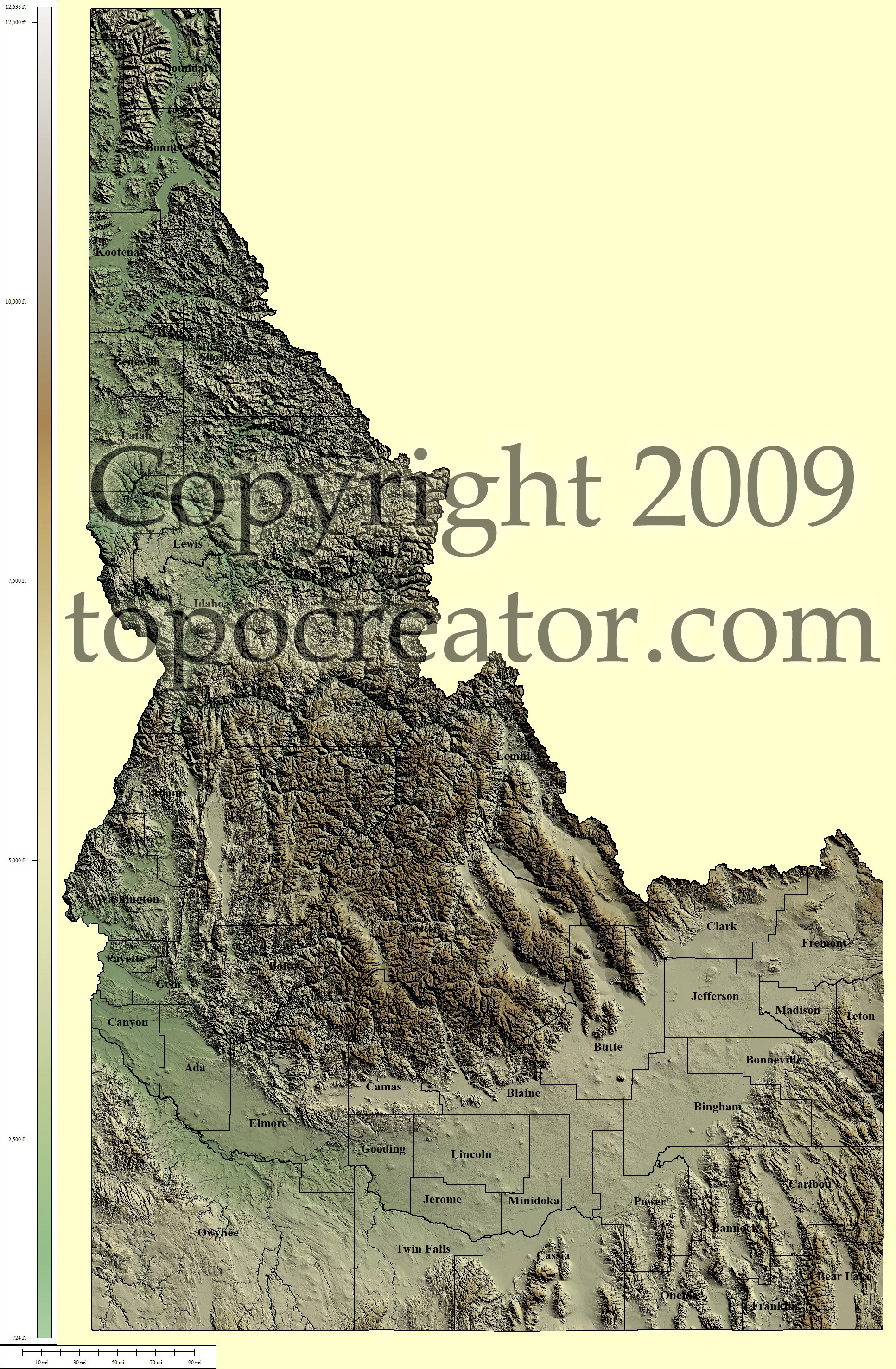 Terms of use. All maps displayed on this page or downloadable via a "download" link on this page are © 2009 topocreator.com released to the public under a Creative Commons Attribution-Share Alike license. Maps are available for purchase for a small fee for educational, personal, and commercial usage under an alternative license. The elevation data used in the creation of these maps has been obtained through the USGS, NOAA, and the US Census Bureau via the public domain.