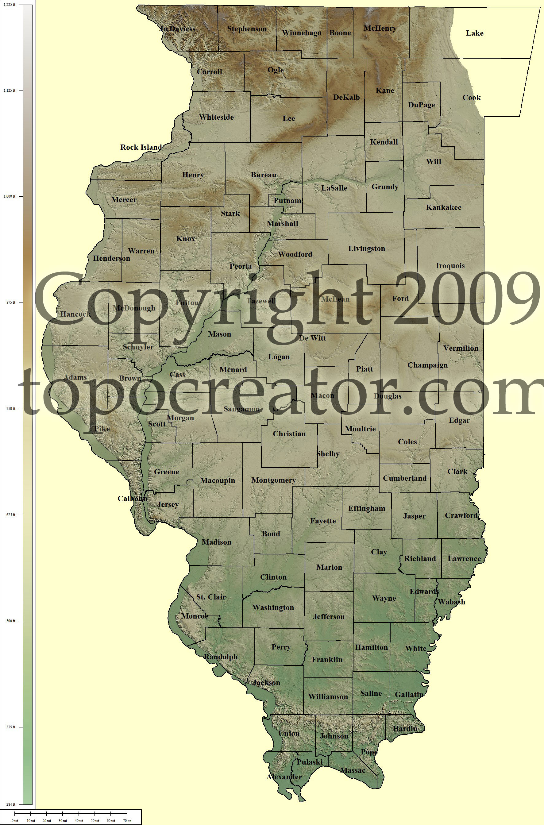 Terms of use. All maps displayed on this page or downloadable via a "download" link on this page are © 2009 topocreator.com released to the public under a Creative Commons Attribution-Share Alike license. Maps are available for purchase for a small fee for educational, personal, and commercial usage under an alternative license. The elevation data used in the creation of these maps has been obtained through the USGS, NOAA, and the US Census Bureau via the public domain.