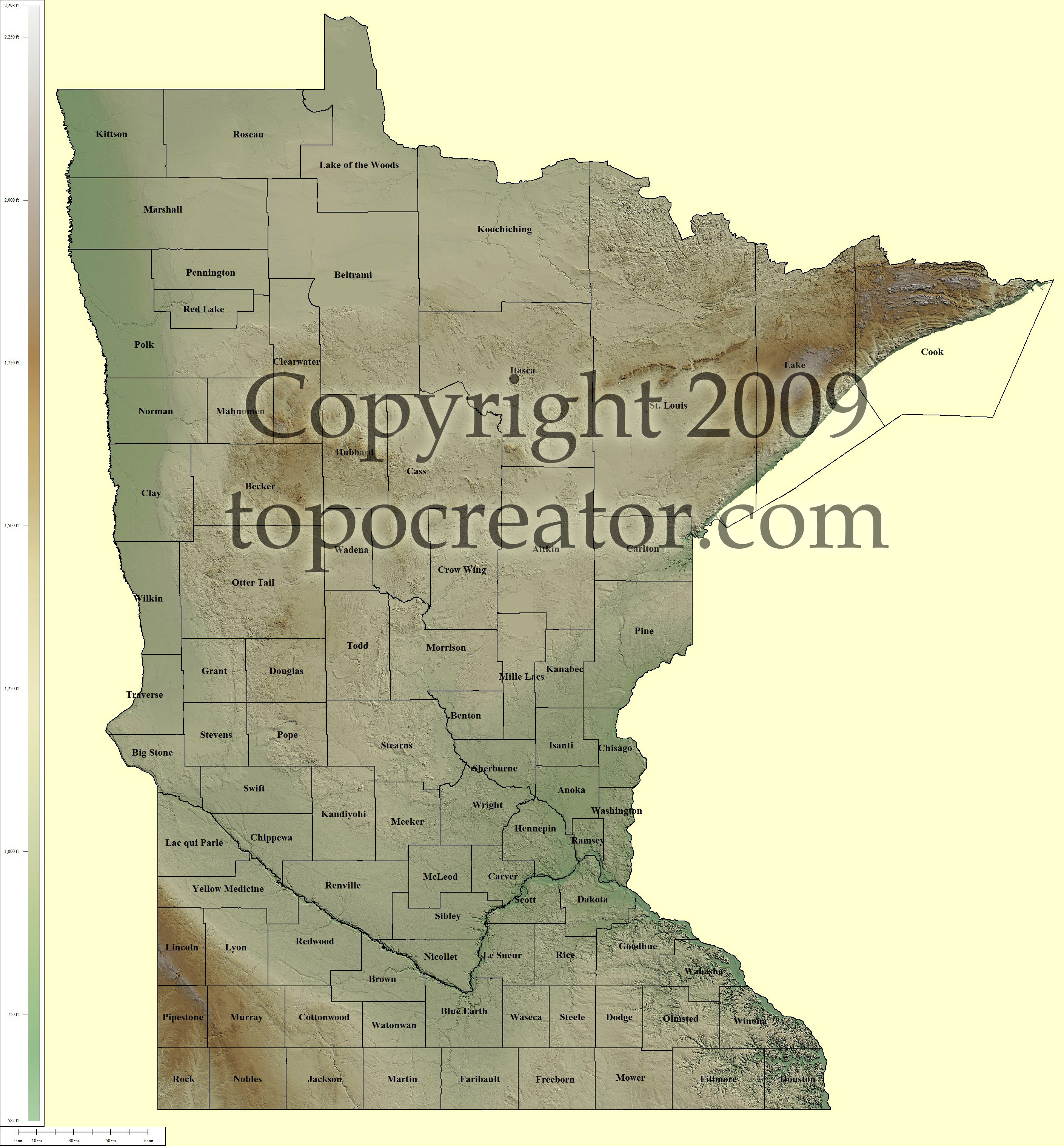 Terms of use. All maps displayed on this page or downloadable via a "download" link on this page are © 2009 topocreator.com released to the public under a Creative Commons Attribution-Share Alike license. Maps are available for purchase for a small fee for educational, personal, and commercial usage under an alternative license. The elevation data used in the creation of these maps has been obtained through the USGS, NOAA, and the US Census Bureau via the public domain.