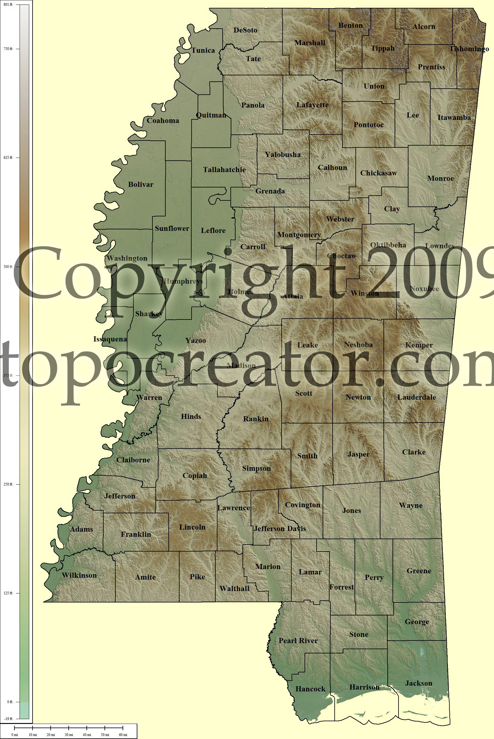 Terms of use. All maps displayed on this page or downloadable via a "download" link on this page are © 2009 topocreator.com released to the public under a Creative Commons Attribution-Share Alike license. Maps are available for purchase for a small fee for educational, personal, and commercial usage under an alternative license. The elevation data used in the creation of these maps has been obtained through the USGS, NOAA, and the US Census Bureau via the public domain.