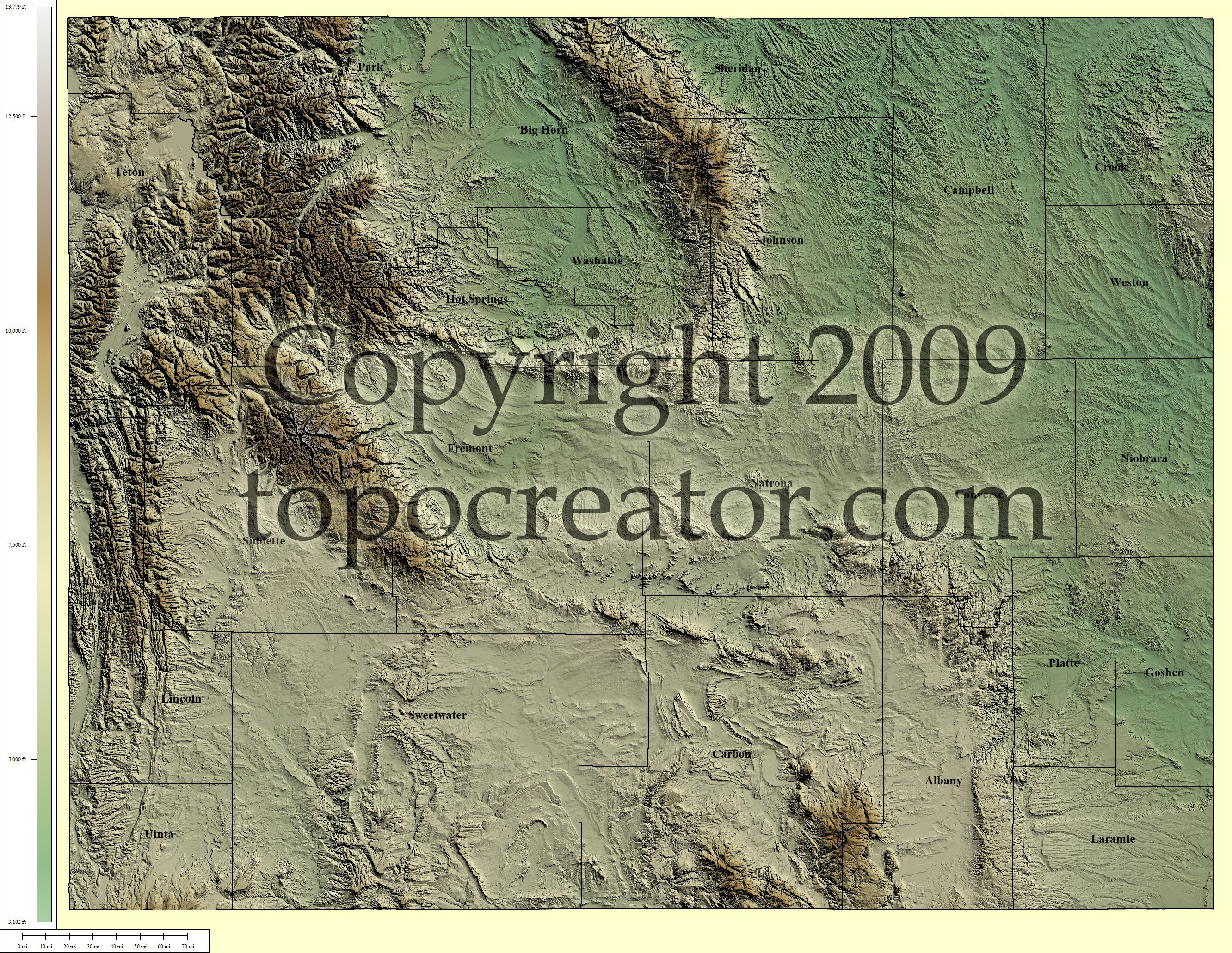 Terms of use. All maps displayed on this page or downloadable via a "download" link on this page are © 2009 topocreator.com released to the public under a Creative Commons Attribution-Share Alike license. Maps are available for purchase for a small fee for educational, personal, and commercial usage under an alternative license. The elevation data used in the creation of these maps has been obtained through the USGS, NOAA, and the US Census Bureau via the public domain.
