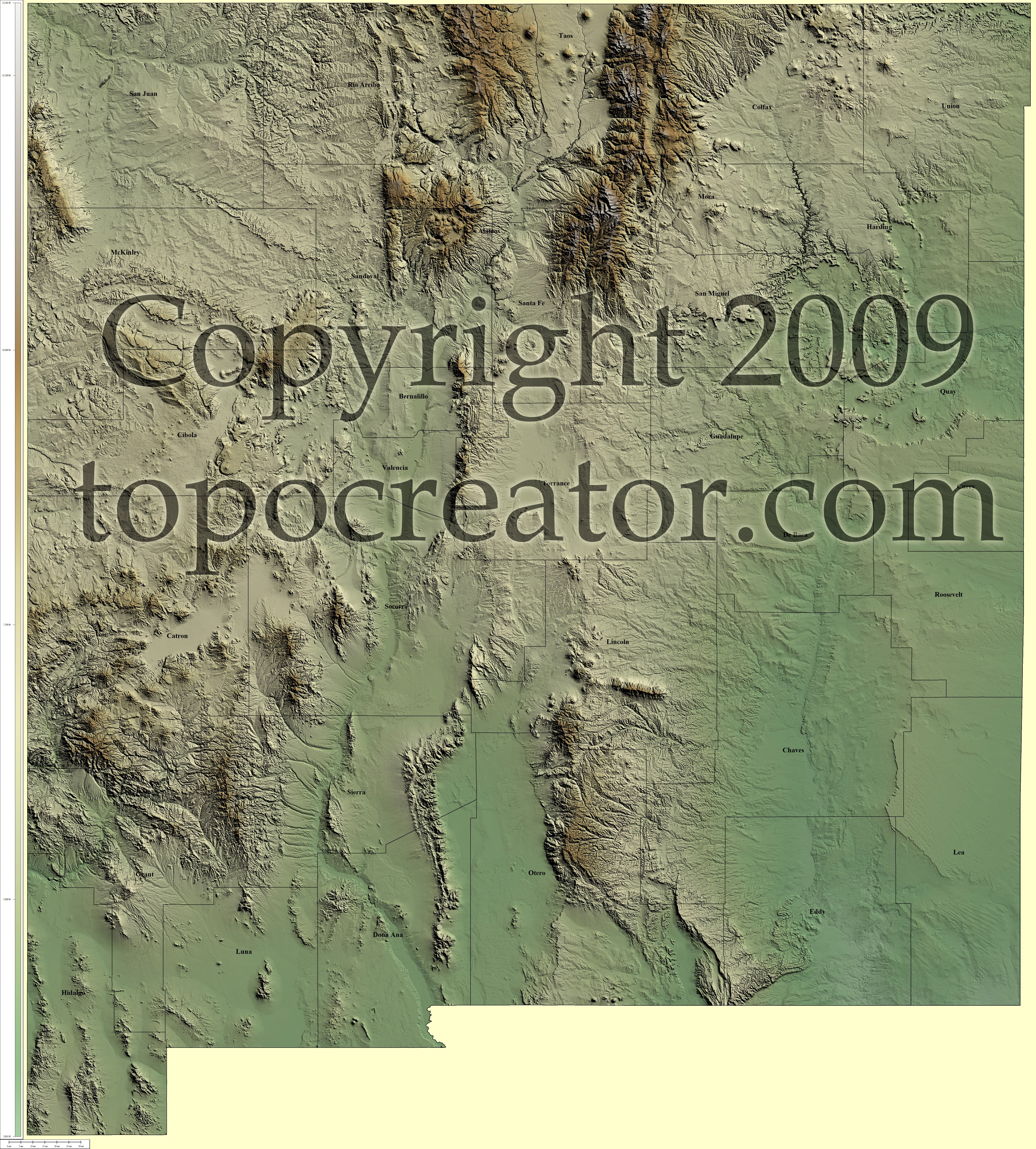 Terms of use. All maps displayed on this page or downloadable via a "download" link on this page are © 2009 topocreator.com released to the public under a Creative Commons Attribution-Share Alike license. Maps are available for purchase for a small fee for educational, personal, and commercial usage under an alternative license. The elevation data used in the creation of these maps has been obtained through the USGS, NOAA, and the US Census Bureau via the public domain.