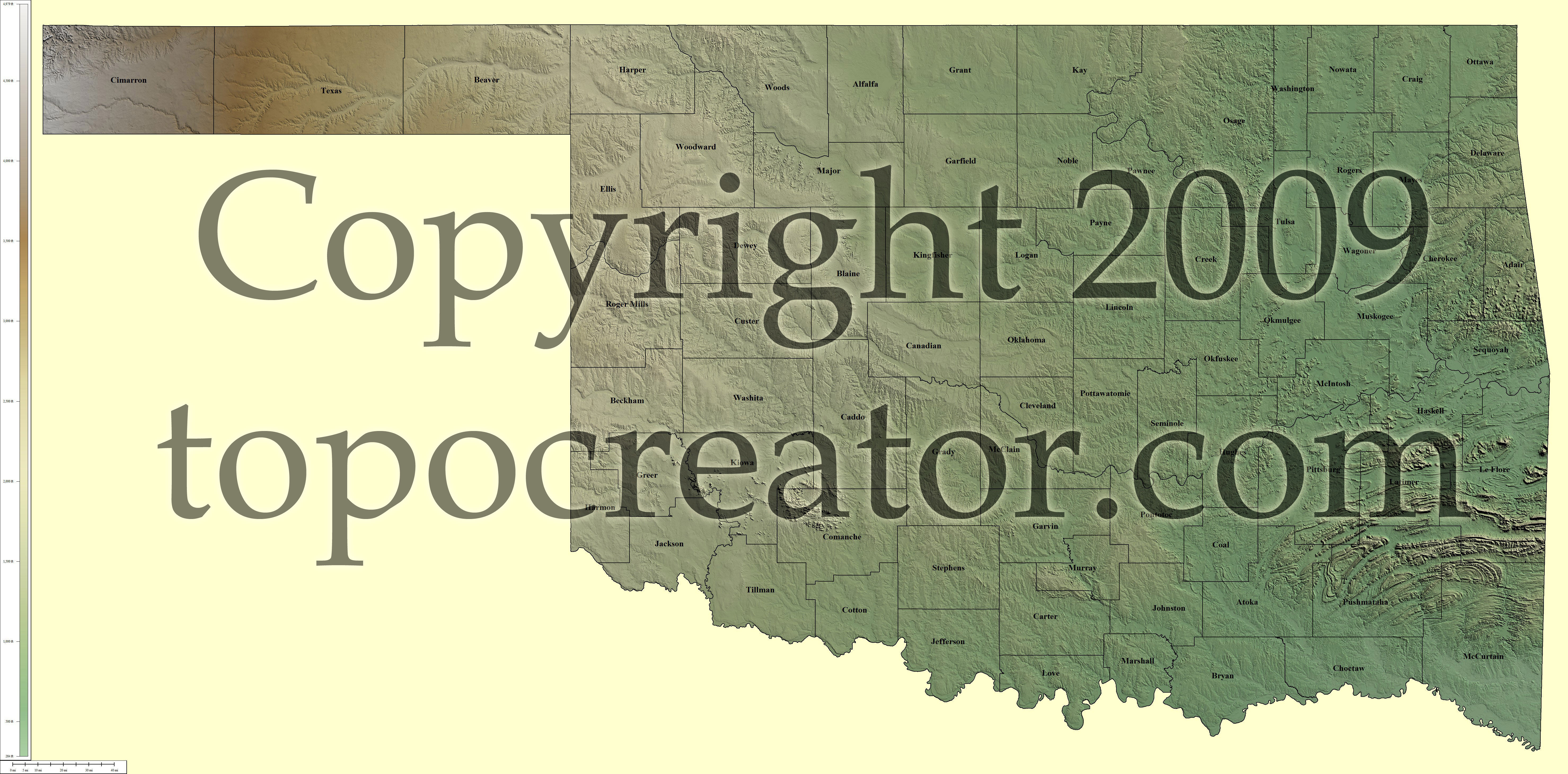 Terms of use. All maps displayed on this page or downloadable via a "download" link on this page are © 2009 topocreator.com released to the public under a Creative Commons Attribution-Share Alike license. Maps are available for purchase for a small fee for educational, personal, and commercial usage under an alternative license. The elevation data used in the creation of these maps has been obtained through the USGS, NOAA, and the US Census Bureau via the public domain.