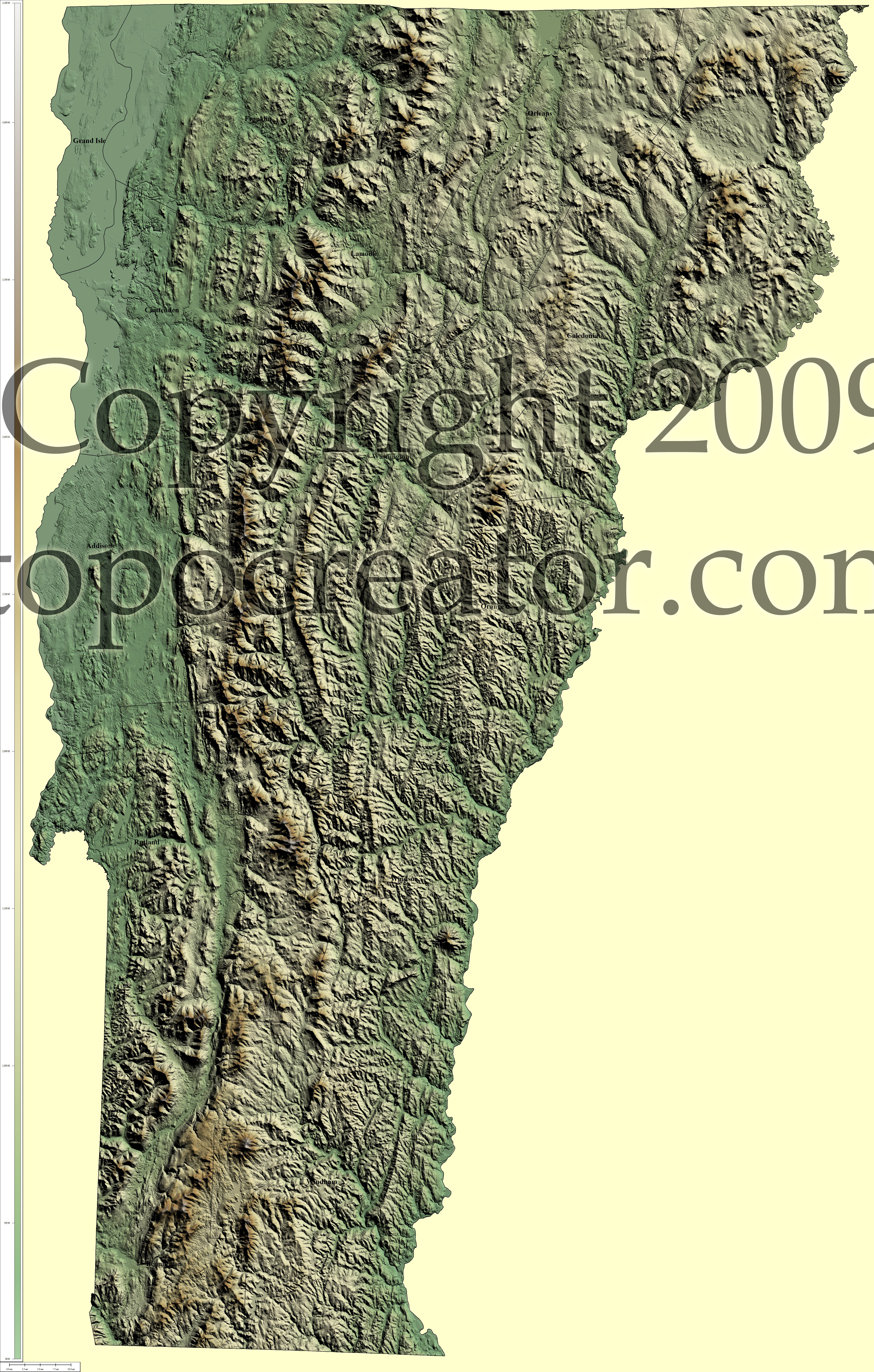 Terms of use. All maps displayed on this page or downloadable via a "download" link on this page are © 2009 topocreator.com released to the public under a Creative Commons Attribution-Share Alike license. Maps are available for purchase for a small fee for educational, personal, and commercial usage under an alternative license. The elevation data used in the creation of these maps has been obtained through the USGS, NOAA, and the US Census Bureau via the public domain.
